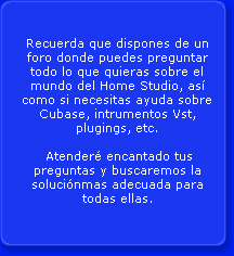 Recuerda que dispones de un foro donde puedes preguntar todo lo que quieras sobre el mundo del Home Studio, así
